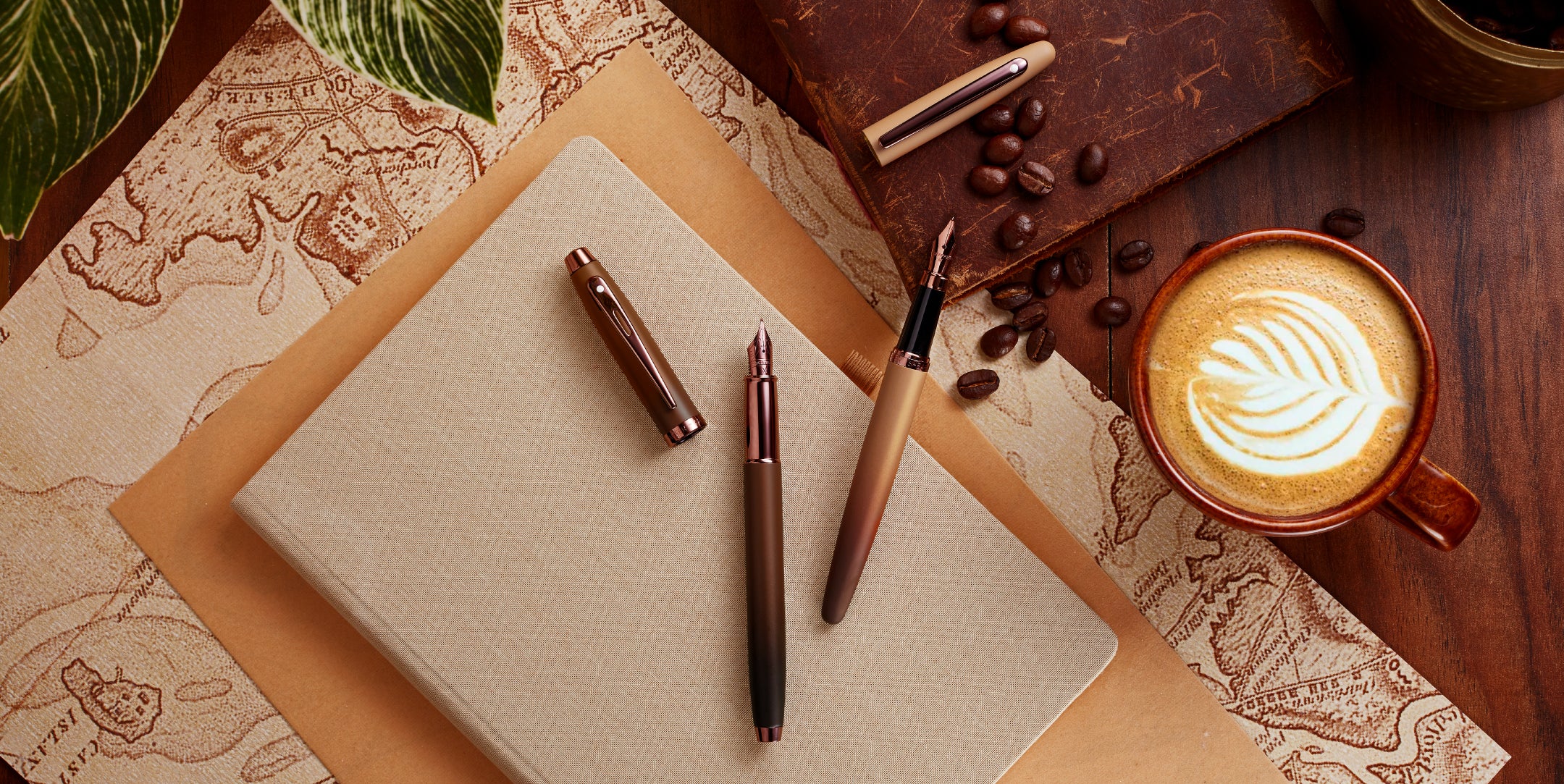 Sheaffer 100 9374 Coffee Edition Matt Brown Fountain Pen with Regal Brown PVD Trims