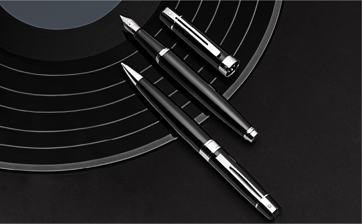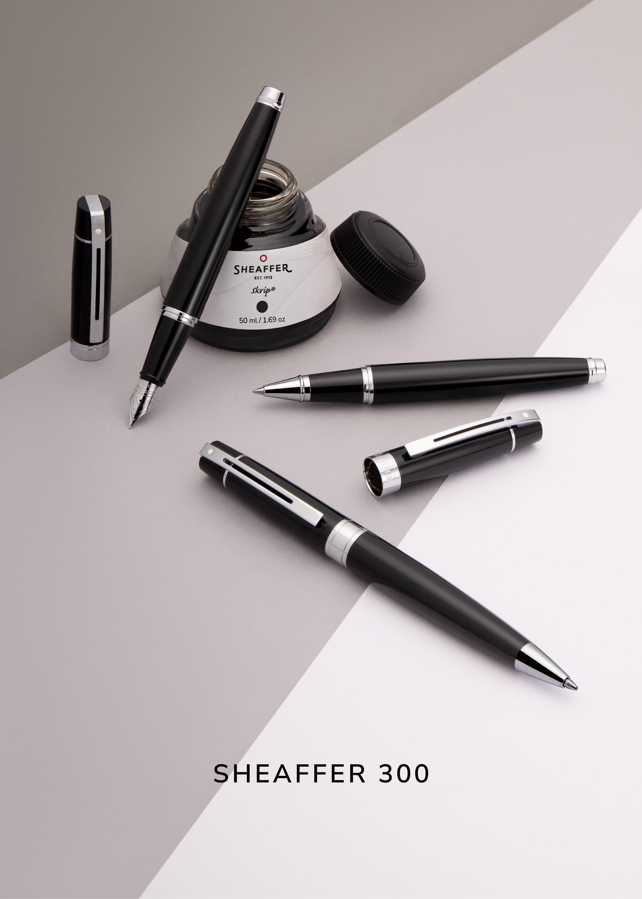 Sheaffer 300 Glossy Black and Chrome Fountain Pen With Chrome Trims Sheaffer 300 Glossy Black and Chrome Fountain Pen With Chrome Trims