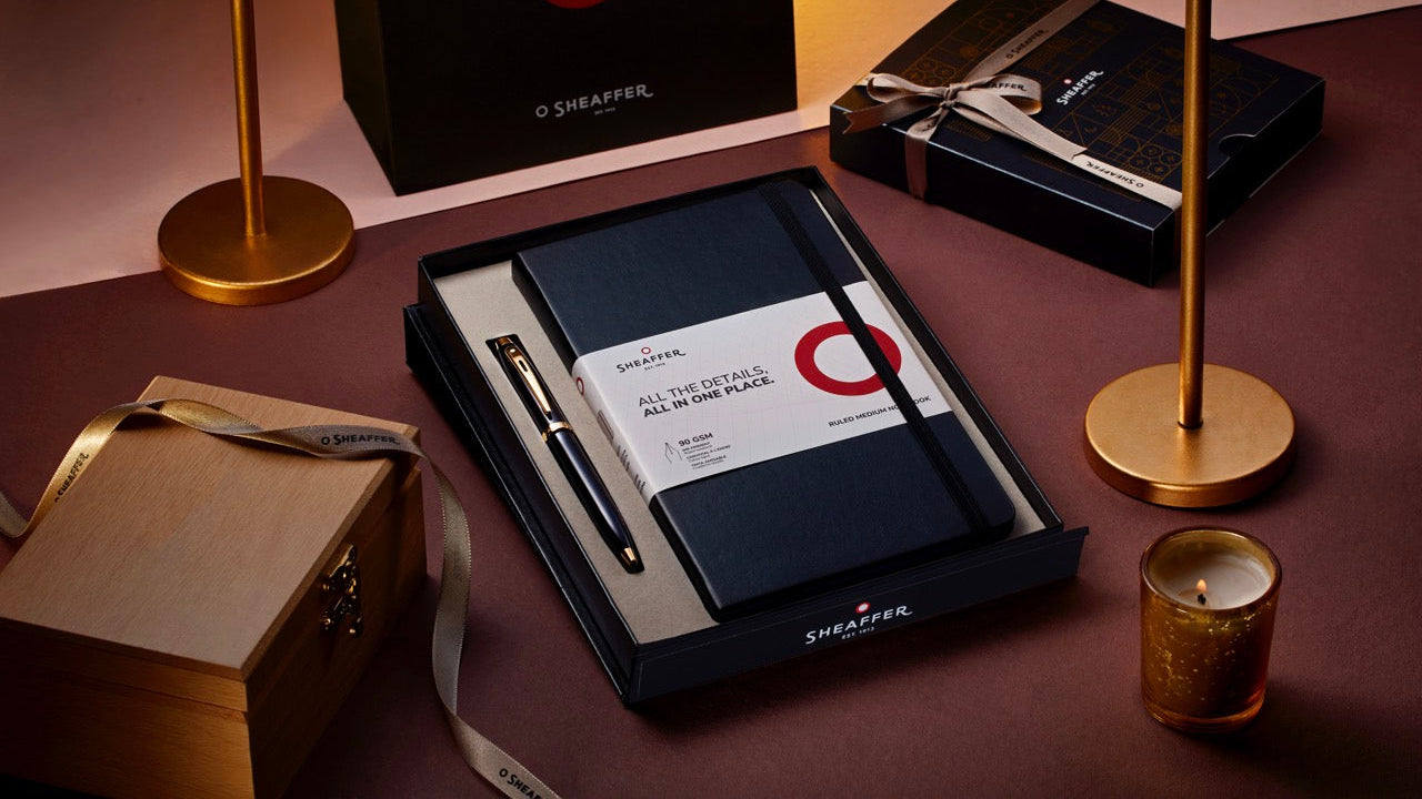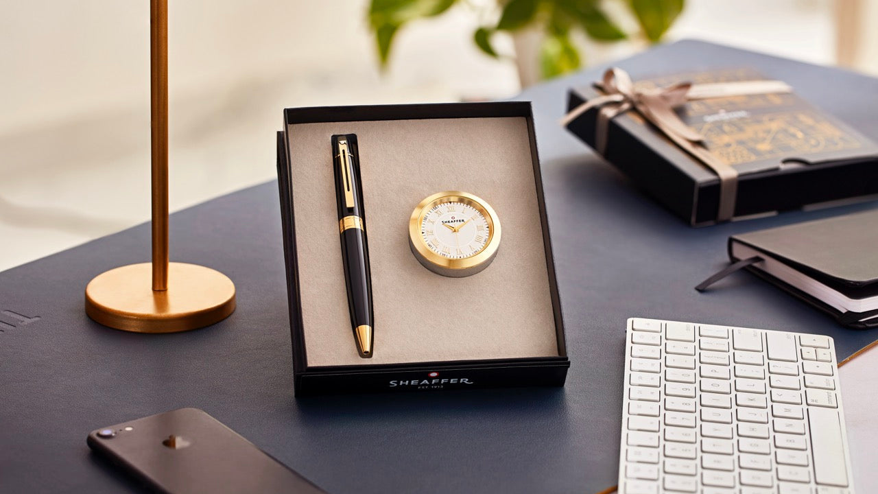 Sheaffer Gift Set Glossy Black 300 9312 Ballpoint Pen With Chrome Trim And Pen Pouch